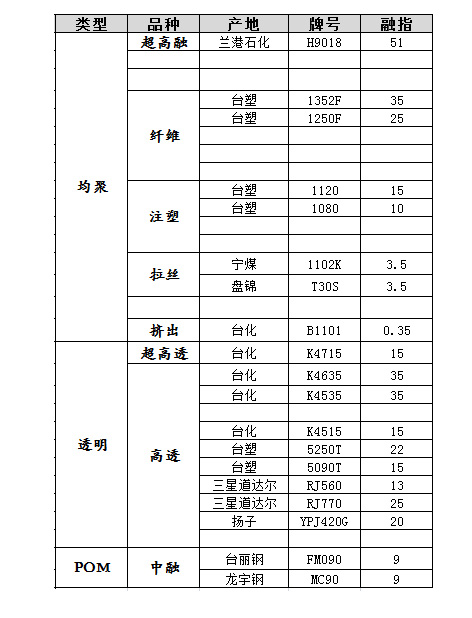 杉杉物產(chǎn)pp部門所經(jīng)營(yíng)產(chǎn)品一覽表