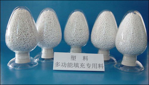 填充母料是一種以純?cè)?FONT face=Arial>PE、PP或苯乙烯樹脂為載體的白色微米級(jí)碳酸鈣母料,碳酸鈣目數(shù)由用戶使用效果確定,具有良好的物性,分散性,穩(wěn)定性,不影響加工機(jī)器螺桿的精密度。此類母料能廣泛使用于PE、PP、PS、ABS等各項(xiàng)塑膠制品中,如:PE塑膠袋,注塑,擠塑等產(chǎn)品,特別是可以焚化處理的環(huán)保塑膠制品,使得達(dá)到降低成本的目的。