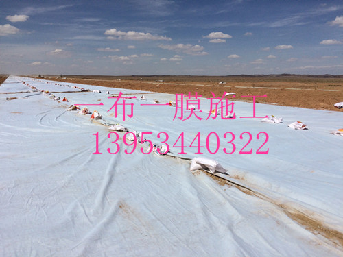 一布一膜施工工藝: 采用埋入法鋪設(shè)。土工布作為土工膜的保護(hù)層,使保護(hù)防滲層不受損壞。為減少紫外線照射,增加抗老化性能。施工中,首先要用料徑較小的砂土或粘土找平基面,然后再鋪設(shè),鋪設(shè)時(shí)不要繃得太緊,兩端埋入土體部分呈波紋狀,最后在所鋪的一布一膜上用細(xì)砂或粘土鋪一層10cm左右過度層。砌上20-30cm塊石(作防沖保護(hù)層。施工時(shí),應(yīng)盡力避免石塊直接砸在上,是邊鋪膜邊進(jìn)行保護(hù)層的施工。一布一膜與周邊結(jié)構(gòu)物連接應(yīng)采用膨脹螺栓和鋼板壓條錨固,連接部位要涂刷乳化瀝青(厚2mm)粘接,以防該處發(fā)生滲漏。施工接縫處理是一個(gè)關(guān)鍵工序,直接影響防滲效果。一般接縫方式有:搭接:搭接寬度宜大于15cm;熱焊:宜于稍厚的土工膜基材,焊縫搭接寬度不小于5CM. 一布一膜的用途:主要用于水利、市政、建筑、交通,隧道、工程建設(shè)中的防滲,隔離,補(bǔ)強(qiáng),防裂加固等土木工程。