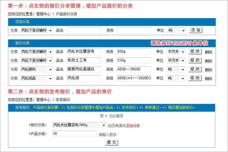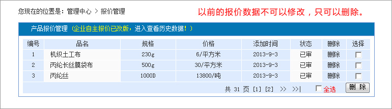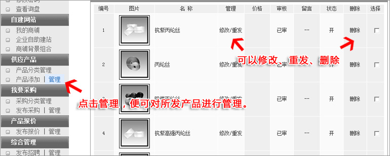 點擊供應(yīng)產(chǎn)品下面的:管理,便可對以往的產(chǎn)品信息進(jìn)行編輯。 3:如何在后臺發(fā)布產(chǎn)品報價?