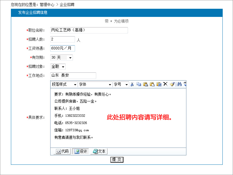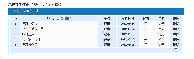 點擊發(fā)布招聘后的:管理,即可對之前發(fā)布的招聘信息進行編輯。